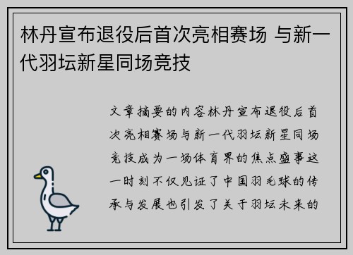 林丹作为羽毛球史上的传奇人物,一直以来都备受世人关注。作为一位羽毛球世界冠军,林丹无疑是羽毛球界的巨星。然而,随着年龄的增长以及伤病的困扰,林丹在一度宣布退役后,意外地选择重返赛场,并决心备战东京奥运会,挑战羽毛球的巅峰荣耀。这一决定引起了广泛的讨论,也激发了无数羽毛球迷的热情。林丹的复出不仅是对个人极限的挑战,也是对羽毛球运动发展的推动。本篇文章将从四个方面详细阐述林丹重返赛场备战东京奥运,重新...