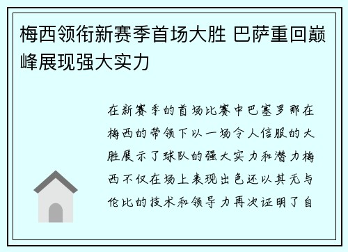 梅西的加盟对于迈阿密国际以及美国足球的意义无可估量。在梅西首度亮相的比赛中,他帮助球队大胜对手,令全场观众为之沸腾。这一事件不仅点燃了美国足球的热情,也为全球足球迷带来一场视听盛宴。梅西的影响力再次得到了全球的验证,他的到来不仅提升了迈阿密国际的竞技水平,也促进了美国足球的普及和发展。全场观众的欢呼声、梅西独特的比赛表现以及比赛的震撼效果,都使得这一场比赛成为美国足球历史中的一个里程碑。本文将从梅...